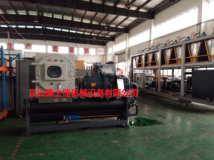 化工行業(yè)用乙二醇制冷機(jī)是一種提供中、低溫載冷劑的制冷設(shè)備,該機(jī)組可提供-35-—-5℃濃度乙二醇(溫度低于-25℃時(shí)不建議采用)水溶液,可作為工藝用冷源的主機(jī)。化工行業(yè)用乙二醇制冷機(jī)系列產(chǎn)品主要由半封閉螺桿壓縮機(jī)、經(jīng)濟(jì)器、油分離器、水冷冷凝器、蒸發(fā)器及控制系統(tǒng)等幾大部件組成。