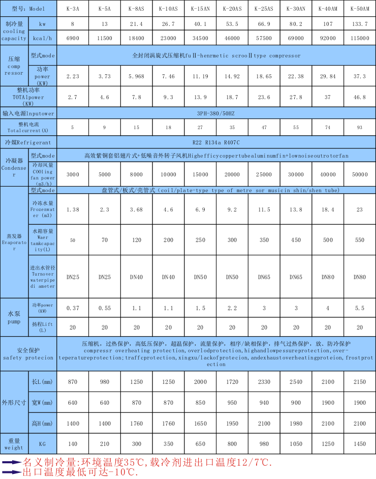 8.水冷及風(fēng)冷式規(guī)格齊全(功率:3HP-300HP,制冷量從600W至34800W)專門設(shè)有各行業(yè)機(jī)械設(shè)備配套之機(jī)型,可按客戶工藝要求制造。
